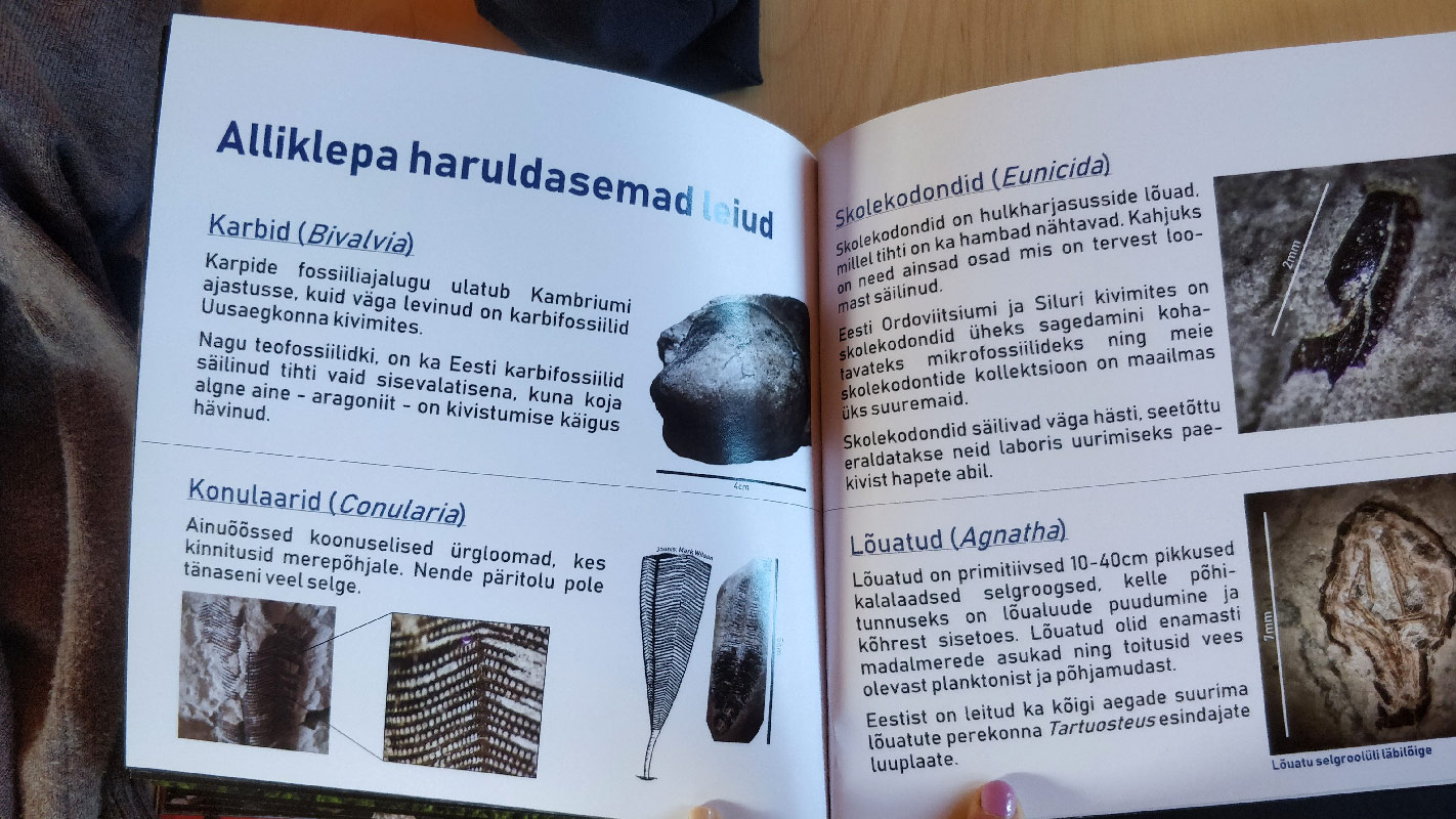 Alliklepa fossiilidest on koostatud eraldi raamat. Oleme pildistanud sealt mõned leheküljed, et sul oleks lihtsam rannas ringi liikudes leide ära tunda. Fossiilihuvilistele jätkub siin avastamist pikemaks ajaks.